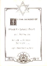 Born c. 1895 London, England. Son of Samuel PIZER & Millie née FREEDMAN (born Russia) of Lovilla, Pakington Street, Geelong, Victoria. Previous 2 years senior cadets, 3 years citizen forces. Wounded in action France 26/1/1917 remaining at duty. Wounded in action France 11/4/1917.