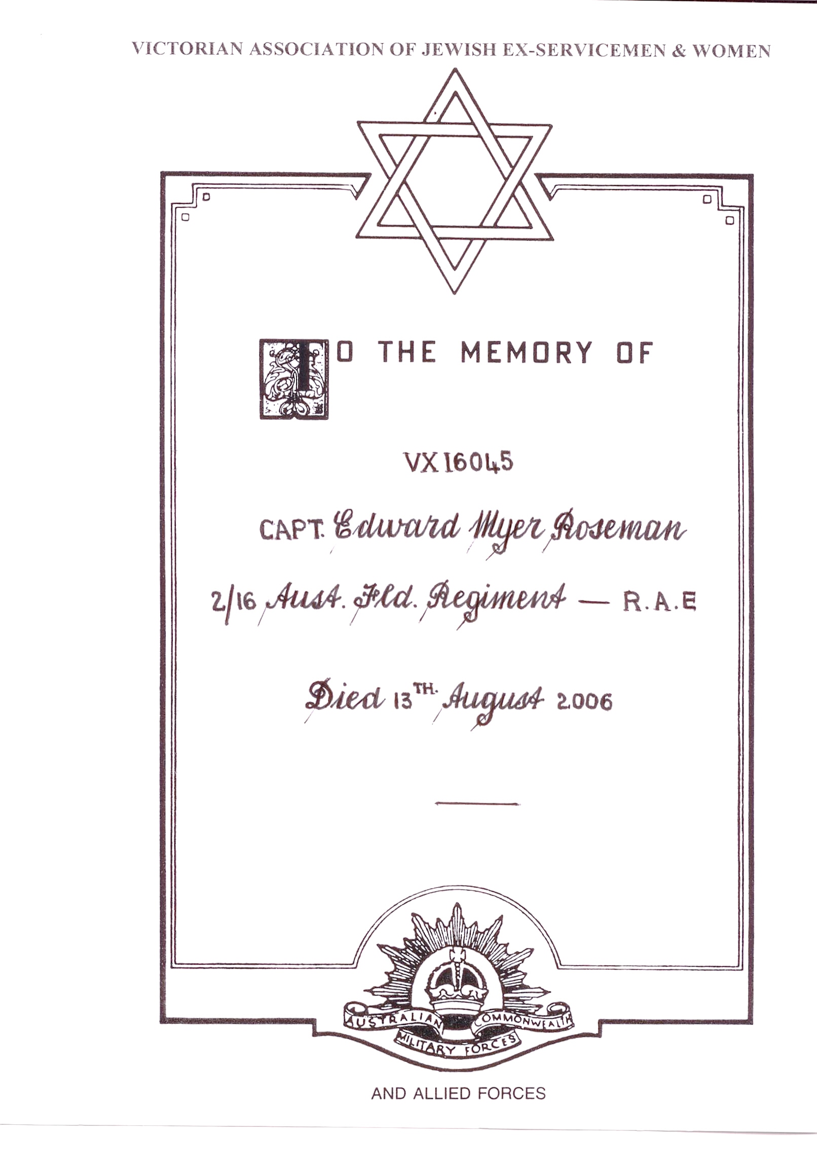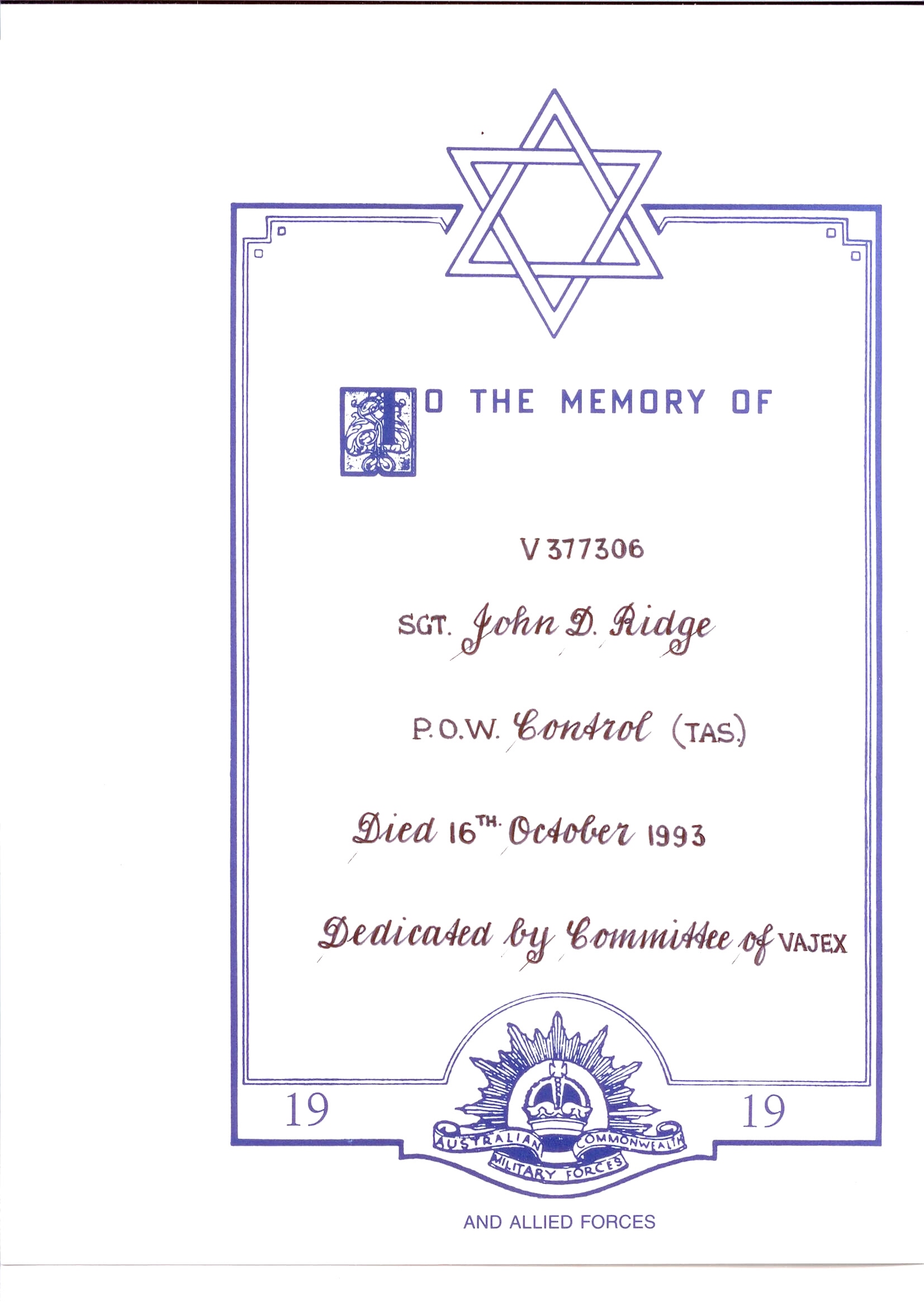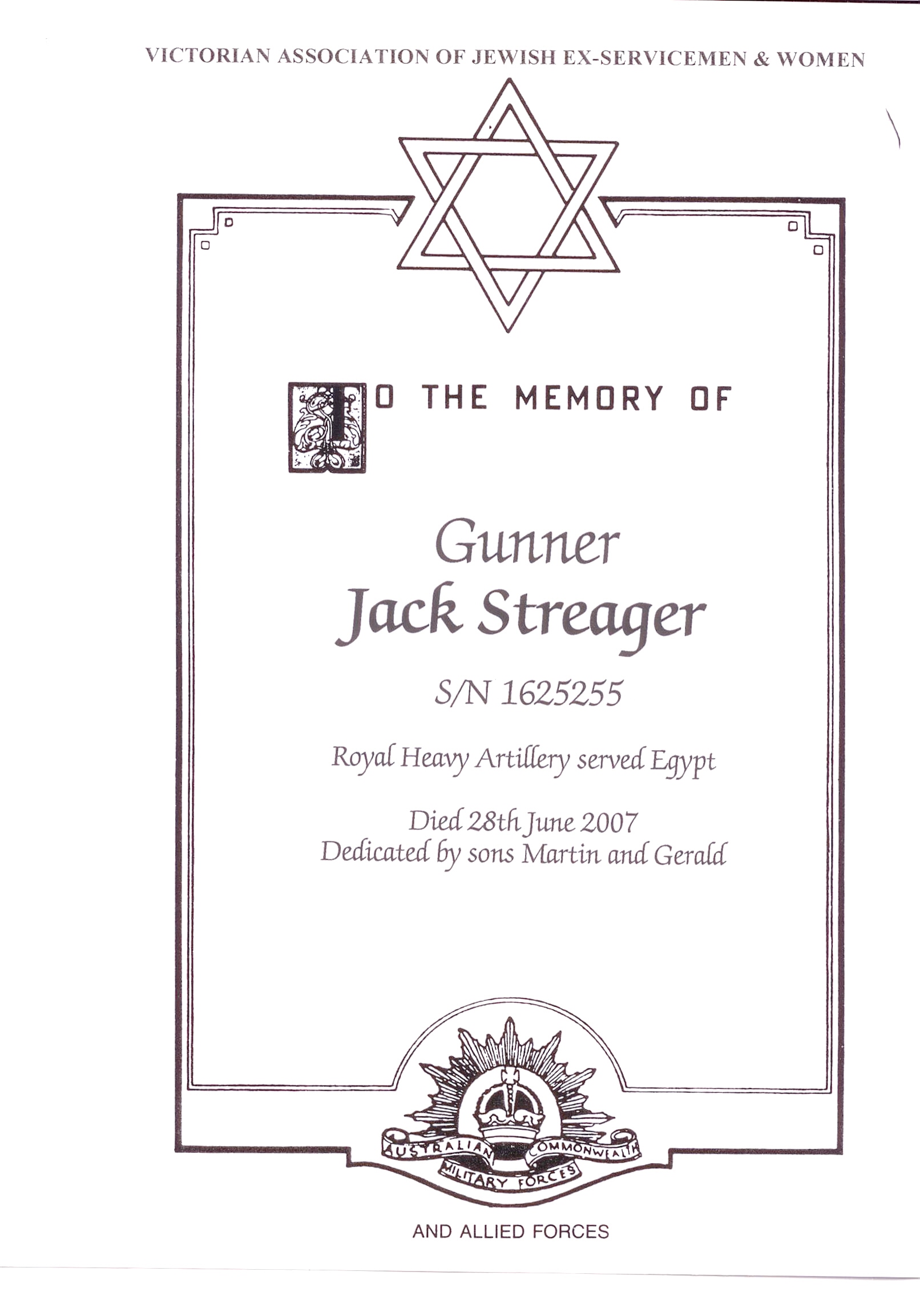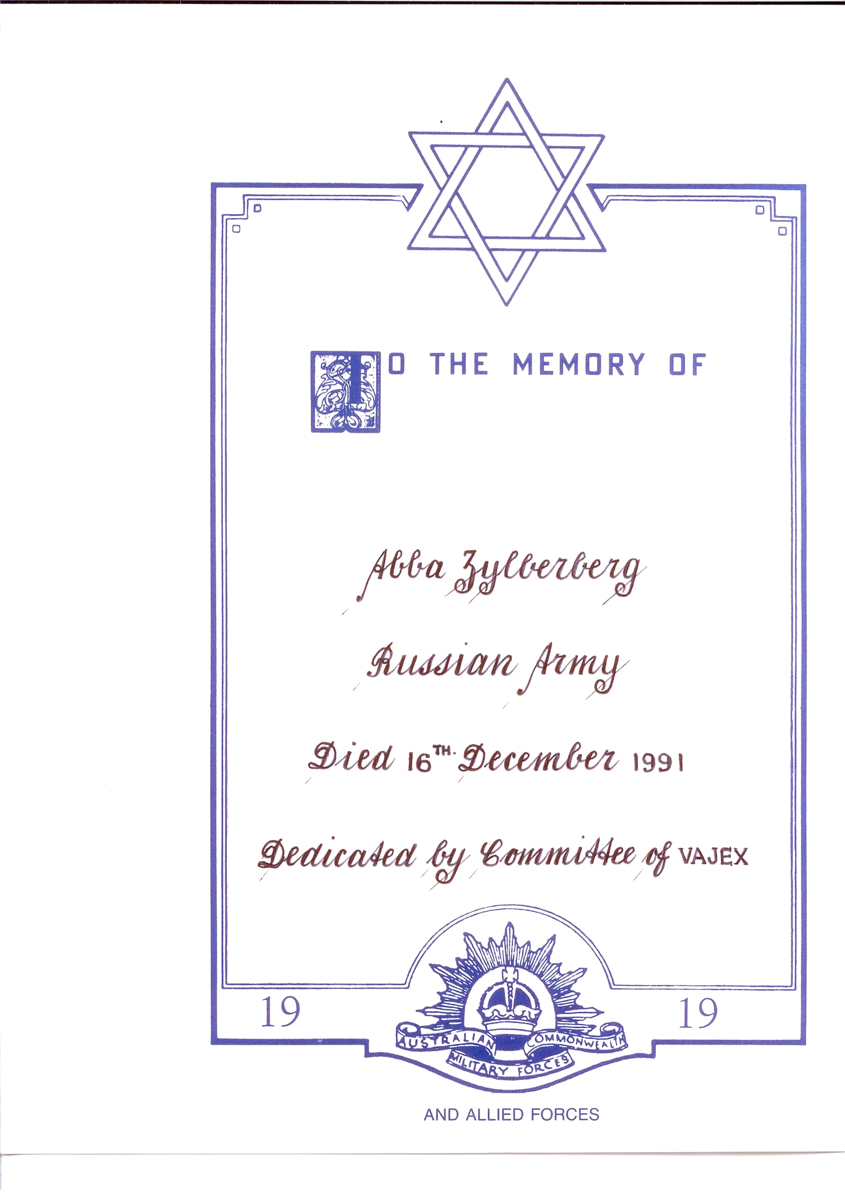 © 2015 - Victorian Association of Jewish Ex & Servicemen & Women Australia Incorporated (VAJEX Australia)