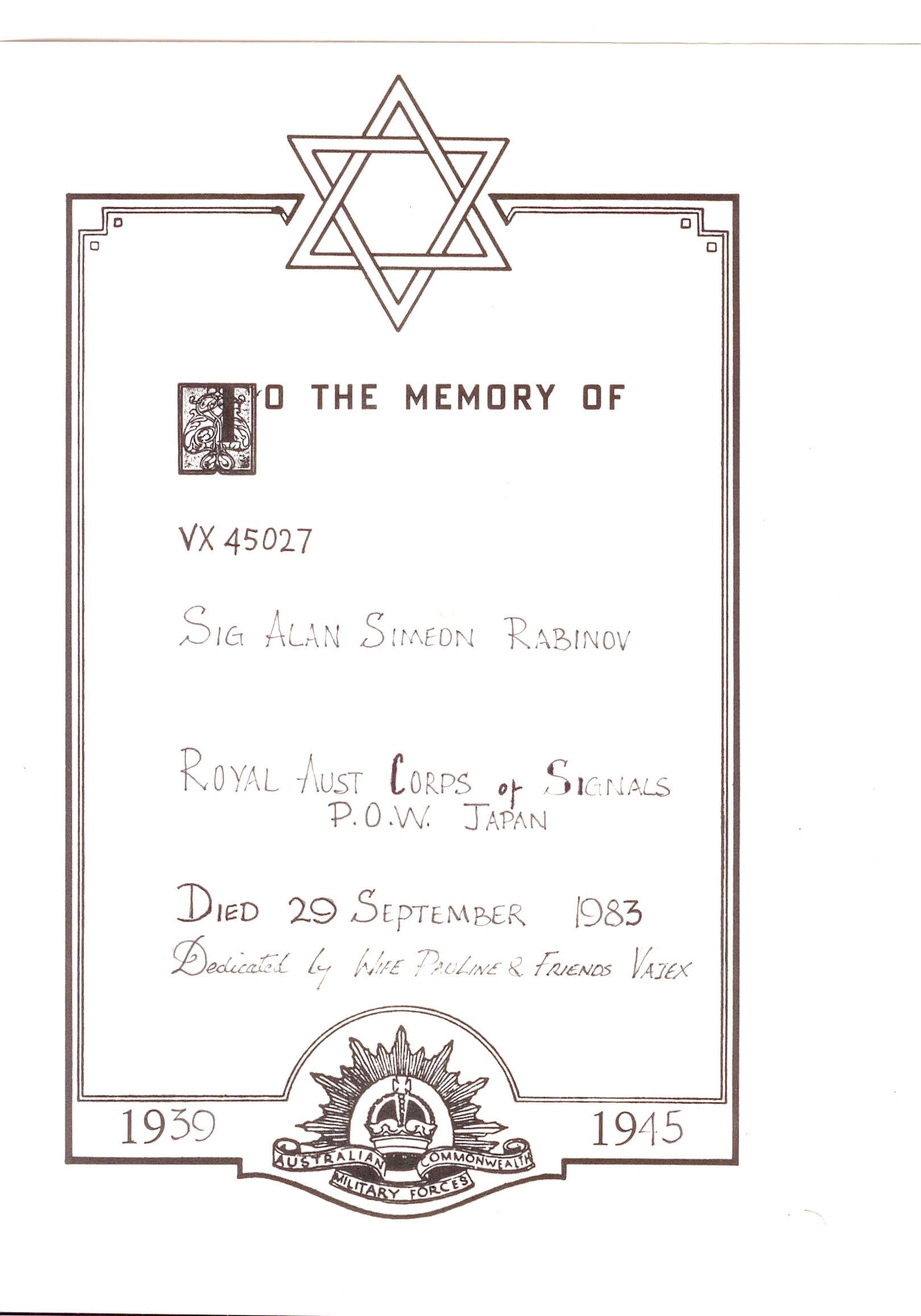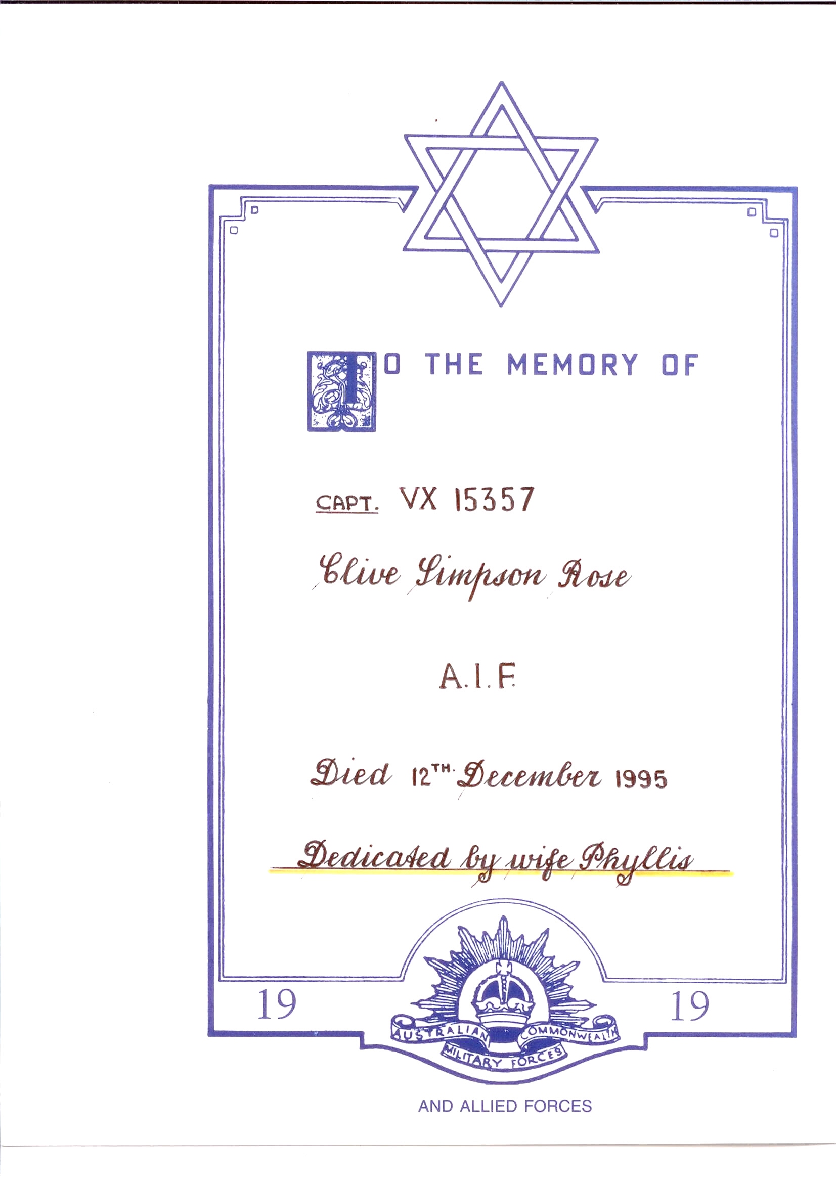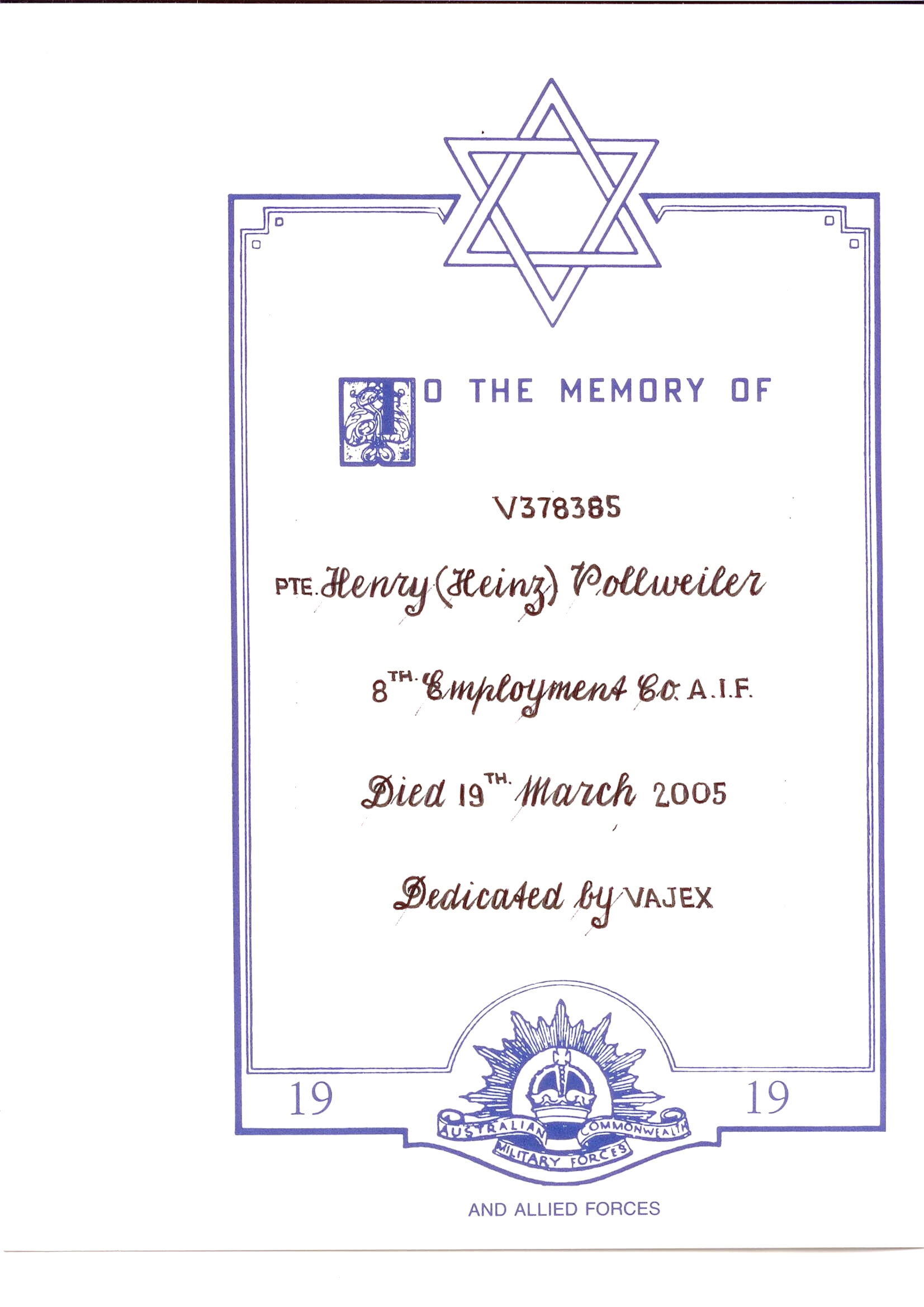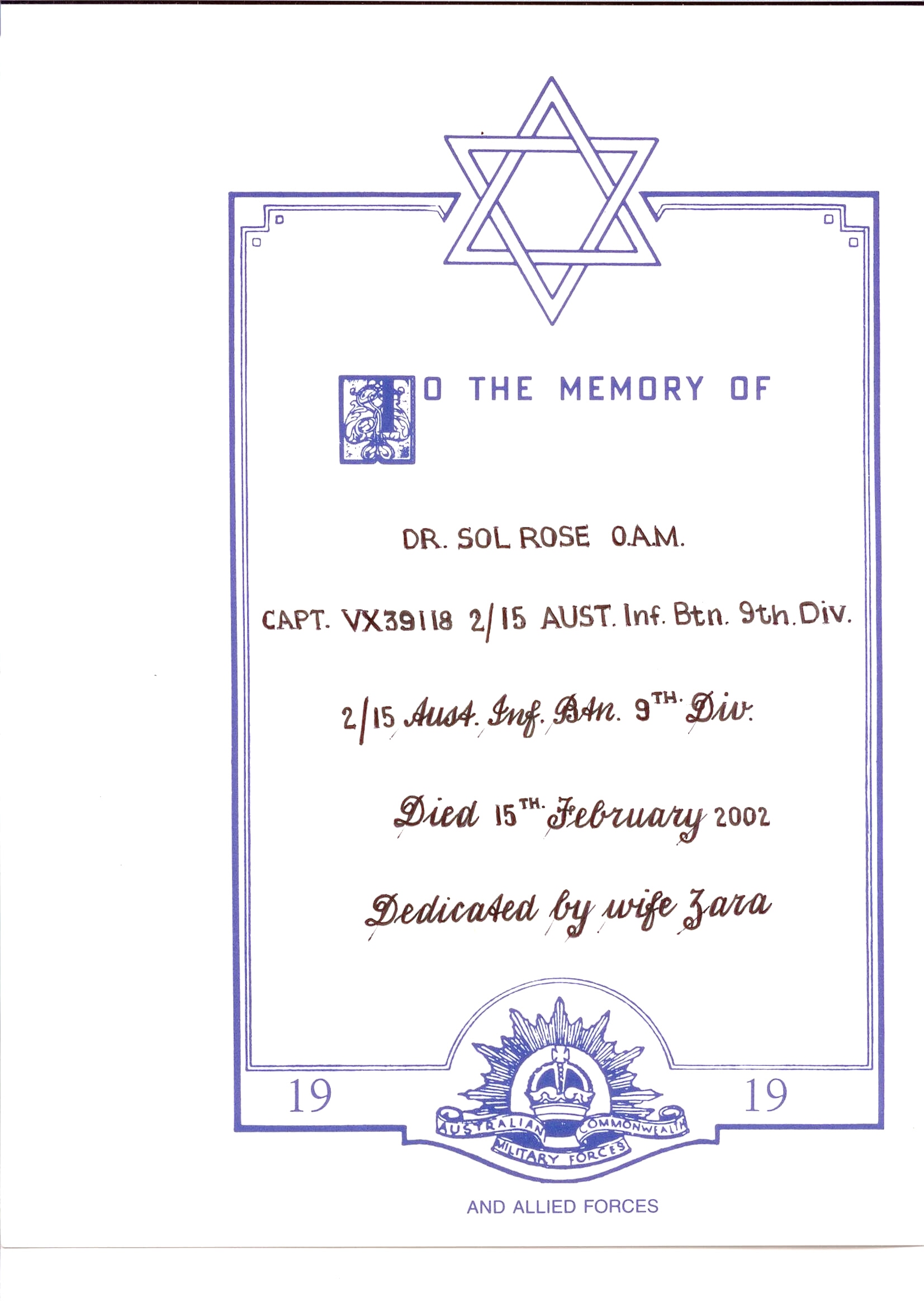 © 2015 - Victorian Association of Jewish Ex & Servicemen & Women Australia Incorporated (VAJEX Australia)