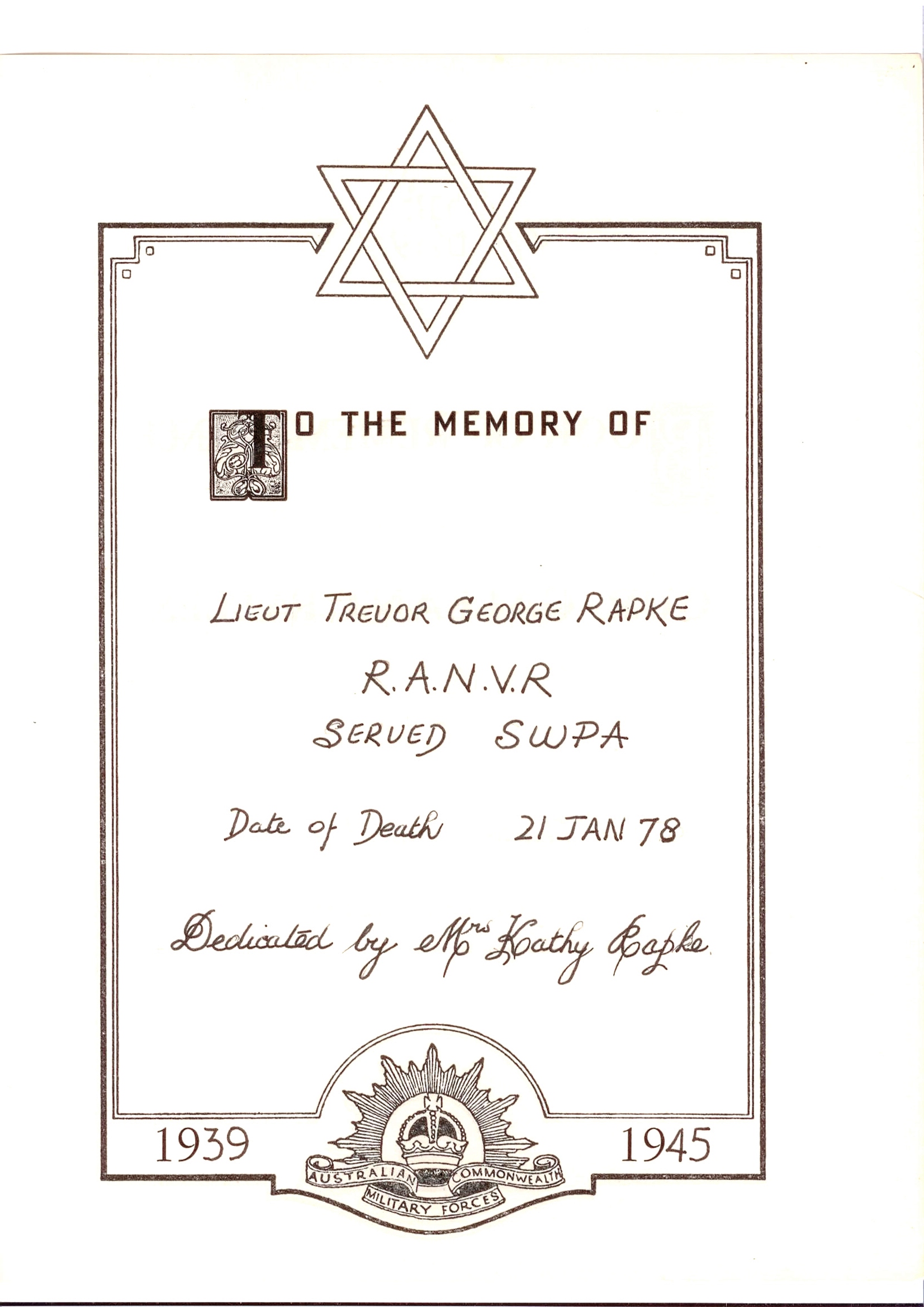 RANVR, HMAS Lonsdale. Joined Militia S/N 179109 1/11/1927-25/2/1930 4 Field Ambulance